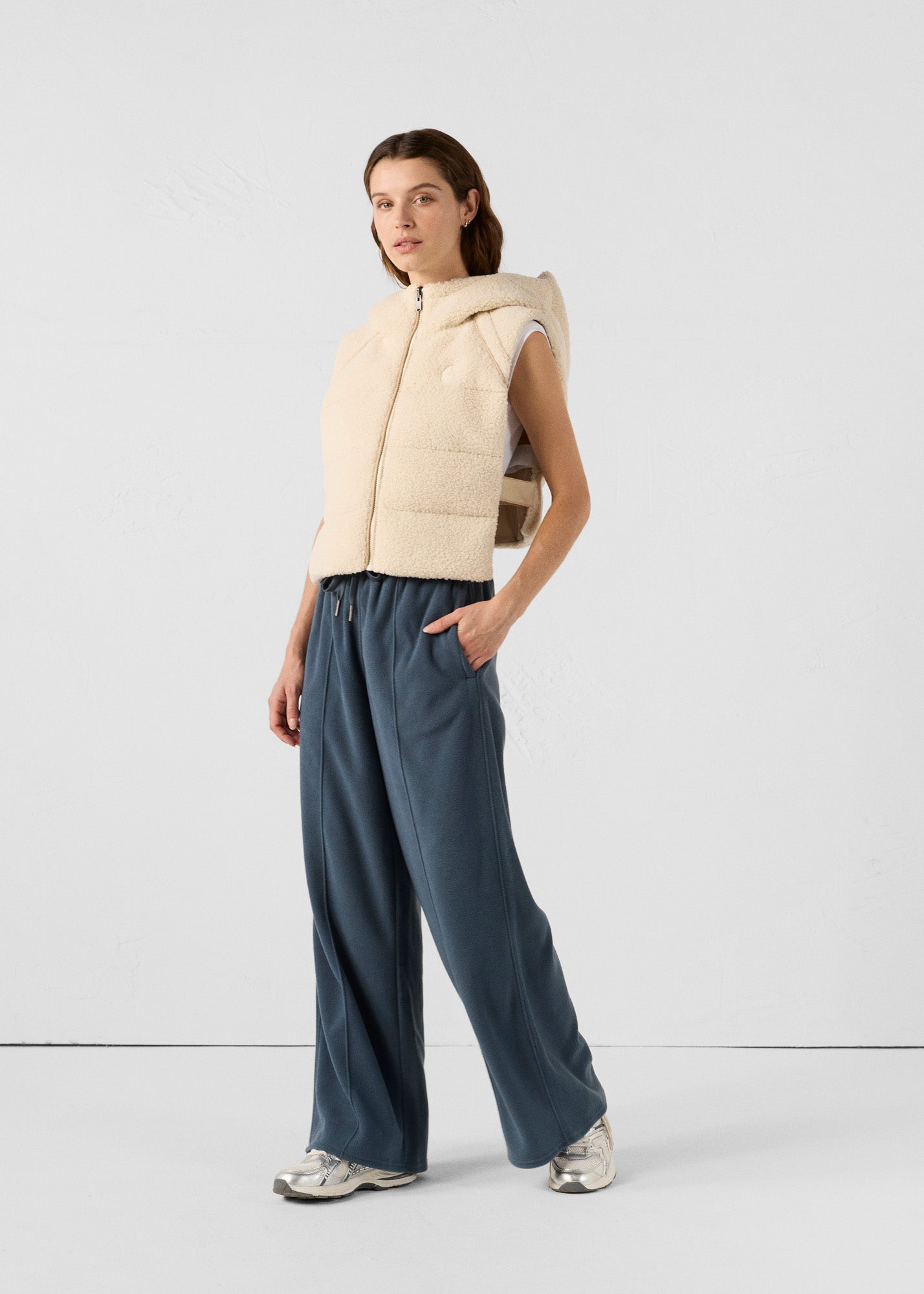 Capuche réversible alliant sherpa chaud et confortable d’un côté, nylon à mémoire de forme moderne de l’autre. Fermeture zippée et détails soignés pour un style polyvalent et hivernal.