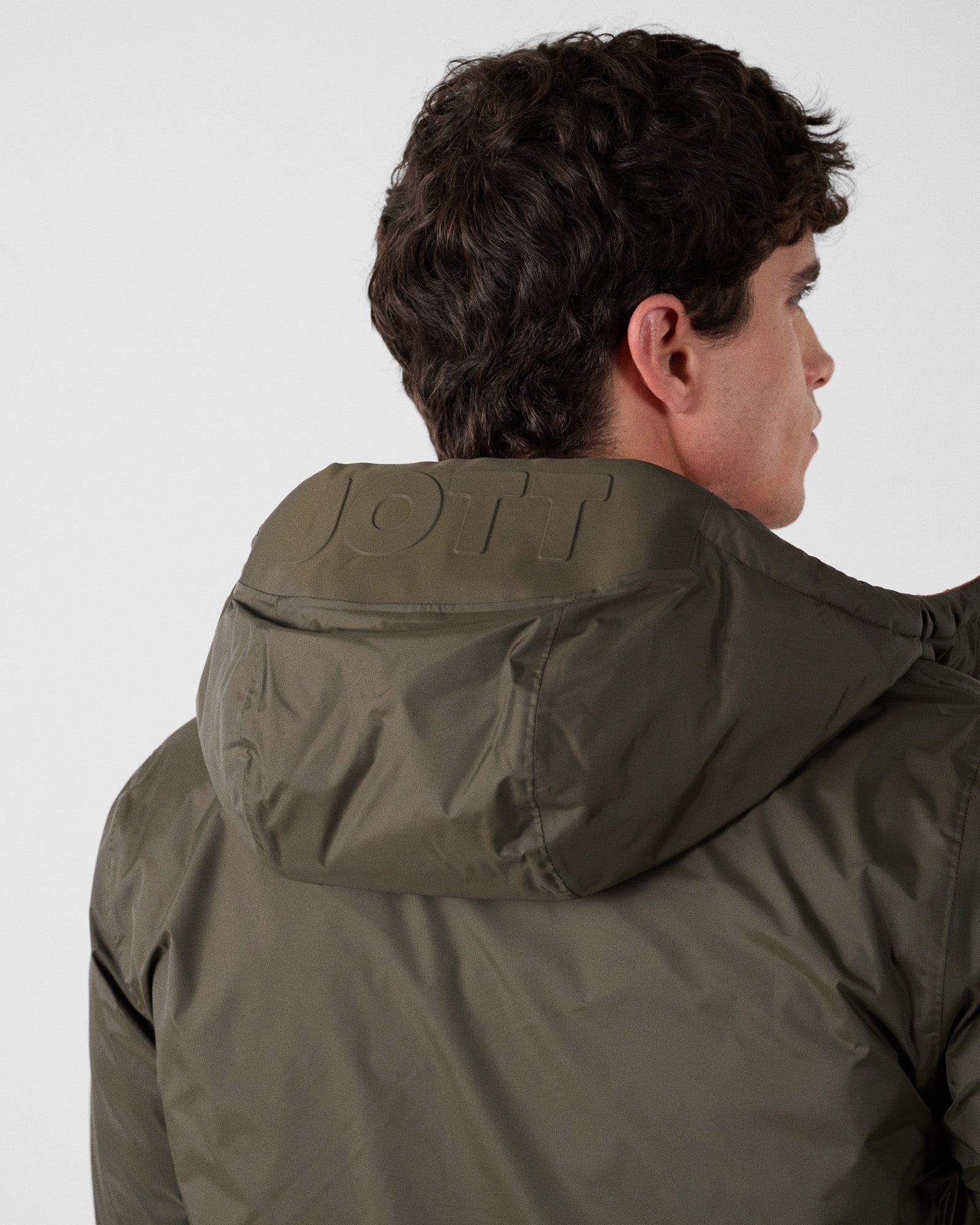 - Détail « JOTT » embossé sur le dessus de la capuche